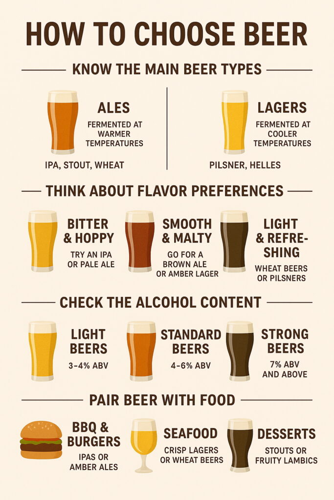 Choosing a beer can be an exciting journey, and with so many options available, it’s easy to feel overwhelmed. Whether you’re a seasoned beer aficionado or a curious newcomer, here’s a guide to help you navigate the world of beer and find the perfect brew for any occasion.