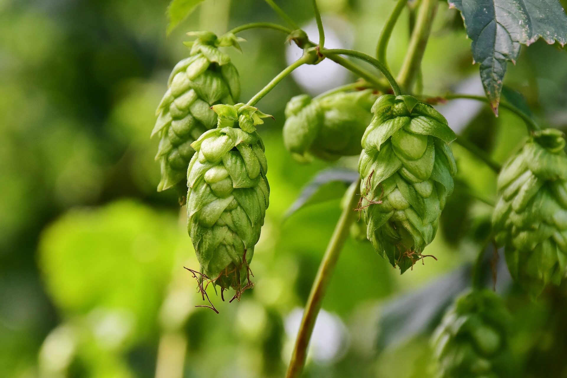 The cultivation of hops is a labor-intensive process. As a perennial plant, hops grow from underground stems called rhizomes. The plants’ annual shoots, or bines, grow rapidly—up to 12 inches a day—climbing along tall trellis systems that can reach over 20 feet. Hops require a minimum of 120 frost-free days and plenty of water to thrive. The cones are typically harvested in the late summer or early fall and are then dried and processed into pellets or plugs for use by brewers.
